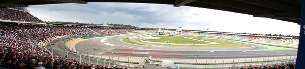 | Место проведения: Хоккенхайм, Баден-Вюртемберг Длина круга: 4,574 км Повороты: 13 Первый Гран-при: 1970 Хоккенхаймринг (нем. Hockenheimring Baden-Württemberg) — гоночная трасса, расположенная рядом с городом Хоккенхайм, федеральная земля Баден-Вюртемберг, Германия. Используется для проведения Гран-при Германии Формулы-1 с 1970 года. В 2007 году гонка на этой трассе не проводилась, так как принято решение чередовать проведение Гран-при в Германии на трассах Нюрбургринг и Хоккенхаймринг. Хоккенхаймринг был построен в 1932 году с использованием лесных дорог, как альтернатива трассе Wildpark в Карлсруэ. В 1936 году трасса начала использоваться, как тестовая для Mercedes-Benz и Auto Union. В 1938 автодром переименовали в Kurpfalzring, и такое название просуществовало до 1947 года. После войны, на трассе начали проводиться этапы мотоциклетных гонок. Первоначальная конфигурация трассы была длиной около восьми километров и состояла из двух протяженных прямых с длинным поворотом Eastern (Восточный) в лесу и развороте внутри Хоккенхайма. В 1965 году новая автодорога Autobahn A6 отделила город Хоккенхайм от трассы, поэтому была построена новая секция автодрома Motodrom. После гибели Джима Кларка в гонке Формулы-2 в 1968 году, в целях повышения безопасности были добавлены 2 шиканы и защитные барьеры. В 1980 году была добавлена шикана в Ostkurve (восточная кривая), после гибели на этом участке Патрика Дэпайе. Ostkurve в 2008 году Эта конфигурация имела большую скоростную секцию, проходящую по лесу, по существу, состоящую из четырёх прямых длиной примерно по 1,3 км, разбитых шиканами, и медленную извилистую секцию «стадиона» (так как на ней были установлены трибуны) называемую Motodrom. В результате, в настройках гоночных машин на Хоккенхаймринге постоянно надо было находить компромисс между низкой прижимной силой (для скорости) на быстрой секции и высокой (для прохождения поворотов) — на медленной. В начале 2000-ых годов, FIA потребовали сократить почти 7-километровую трассу в целях безопасности, угрожая прекратить проведение на Хоккенхаймринге Гран-при Формулы-1. Власти земли Баден-Вюртемберг произвели финансирование модернизации автодрома под руководством Германа Тильке. Новая версия была готова к Гран-при Германии 2002 года. Секция стадиона осталась почти без изменений (был только заменено дорожное покрытие и несколько изменен первый поворот Nordkurve). А вот «лесная» секция была просто «обрублена», асфальт с неё снят и засажен новыми деревьями, кроме небольшого участка вблизи Ayrton Senna Kurve. Однако пока что на длинных прямых только зеленеет трава, зарастать деревьями просеки будут не один десяток лет. После возведения новых трибун, автодром вмещает около 120 000 человек.   КРУГ ПО ТРАССЕ С СЕБАСТЬЯНОМ ФЕТТЕЛЕМ (рекорд круга)