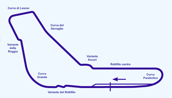 | Расположение: Монца, Италия Длина круга: 5 770 м Кругов 53 Длина гонки: 305 810 м Строительство Monza Autodrome началось в январе 1922 года, когда миланский автоклуб решил отметить 25-летний юбилей постройкой собственной трассы. Было рассмотрено несколько проектов, и окончательный выбор пал на парк в Монце, рельеф которого устроил инвесторов, инженеров и строителей. Тут же была учреждена компания по поддержке строительства – S.I.A.S (Societa Incremento Automobilismo e Sport) с полностью частным капиталом. Архитектором трассы стал Альфредо Розелли. Первоначальный проект включал в себя 14-километровый трек, стоимость которого оценивалась в шесть миллионов лир. Уже через месяц, в феврале 1922 года символический «первый камень» был заложен руководителями миланского автоклуба и работа закипела. За рекордный срок в 110 дней всё было готово – классическая трасса, с минимальными изменениями дошедшая до наших дней, и 4,5-километровый овал с профилированными виражами высотой 2,5 метра (расчетная скорость по тем временам – 180-190 км/ч). Официальное открытие состоялось в дождливый день 3 сентября 1922 года, важность события отмечала фигура премьер-министра. Фактически это был лишь третий автодром в истории автоспорта, построенный специально для гонок. В 1928 году произошла самая серьезная авария в истории итальянского автоспорта - пилот Эмилио Матерасси врезался в трибуну, погиб сам и погубил 27 зрителей. После этого гонку решили временно проводить на небольшом участке трассы – от первоначального варианта оставили лишь 4,5 километровый изгиб прямой и несколько поворотов. Во время войны трасса Monza Autodrome использовалась не по назначению – сначала сюда вывезли архив, затем животных из Миланского зоопарка. Покрытие было окончательно разрушено танковым парадом 1945 года, а боксы и трибуны – ещё раньше. В начале 1948 года миланский автоклуб решил восстановить трассу, и снова в рекордные сроки, меньше чем за два месяца, автодром был готов принять гонщиков. 17 октября Гран При Италии выиграл Жан-Пьер Вимилль на Alfa Ромео 158, а через неделю здесь финишировал чемпионат мотогонщиков. В 1955 году строители вернулись вновь, на этот раз работы предстояли более масштабные. Возросшие скорости и требования безопасности не сочетались с насыпной гравийной подушкой под асфальтом, нужно было уложить бетонный фундамент. Длину овала сократили до 4,250 километров, также изменили конфигурацию нескольких участков – в частности, появился поворот с увеличивающимся радиусом – Параболика. Пилоты могли разгоняться в Монце до невероятных по тем временам 285 км/ч. В ту пору организаторы гоночных серий могли выбирать подходящую конфигурацию – с использованием овала или без. Правда в 1961 году, после страшной аварии, длинную трассу навсегда закрыли для одноместных машин – на входе в Параболику Вольфганг фон Трипс не удержал Ferrari и врезался в трибуну. Гонщик и более десятка зрителей погибли. Организаторы решили установить железный забор, но во время свободных заездов перед Гран При Италии, 5 сентября 1970 года не выдержал и он. На Lotus Йохена Риндта отказали тормоза в той же Параболике, машина пробила слабое основание заграждения, и гонщик погиб. В Монце прижимная сила, обеспечиваемая аэродинамикой на скорости в 250 км/ч, примерно на 20% меньше, чем в Монако. Нехватку сцепления нужно компенсировать настройками шасси, обеспечив необхо