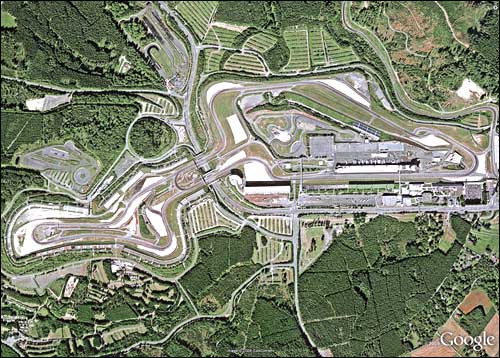 | Расположение: Нюрбург, Германия Длина круга: 4 556 м. Кругов: 67 (100%) Длина гонки: 305, 252 км Идея строительства гоночной трассы в центре горного лесного массива Эйфель, в 80 километрах от Бонна, недалеко от бельгийской границы, принадлежала обер-бургомистру Кельна Конраду Аденауэру, ставшему после войны федеральным канцлером ФРГ. Он убедил федеральные власти выделить 15 миллионов марок, в 1925 году в деревушку Нюрбург приехали строители, а в 1926-м состоялась первая гонка, которую (под дождем) выиграл Рудольф Караччиола. Месяц спустя Нюрбургринг принимал Гран При Германии, и сотня тысяч зрителей - невиданная по тем временам цифра, наблюдали за победой Отто Мерца за рулем Mercedes-Benz. Первоначальный вариант отличался большой длиной круга (более 22 километров), сложностью (73 поворота) и большим перепадом высот (300 метров). В 1951 году трасса была включена в календарь чемпионата мира, и до 1976 года принимала у себя Гран При Германии. Круг длился больше семи минут, гонщики жаловались на несоблюдение стандартов безопасности, и страшная авария Ники Лауды в 1976 году привела к закрытию автодрома. Затраты на модернизацию Нюрбургринга составили более $62 млн, и в 1984 году автодром снова принимал участников чемпионата. Его длина сократилась до 4,5 километров, перепад высот - до 56 метров, а число поворотов - до 14. Однако гонщики остались не лучшего мнения о гоночных характеристиках трассы, обозвав ее "скучной" и "слишком идеальной". Через пару лет Нюрбургринг вновь исключили из чемпионата. Перед началом сезона 1995 года организаторы еще раз перестроили трек. Нюрбургринг включили в календарь, но под титулом Гран При Европы.  ГРАН ПРИ ЕВРОПЫ 1995 (борьба Михаэля Шумахера и Жана Алези)