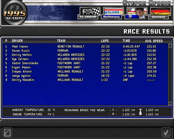 ПРЕДВАРИТЕЛЬНЫЕ РЕЗУЛЬТАТЫ ГОНКИ: